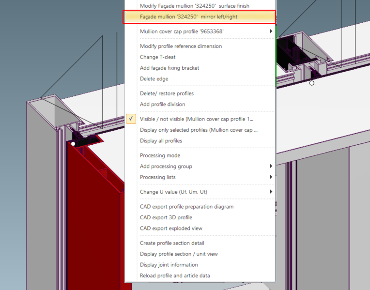 To flip 9653368 mullion cover cap side, right click it and choose Facade mullion [******] mirror left/right: