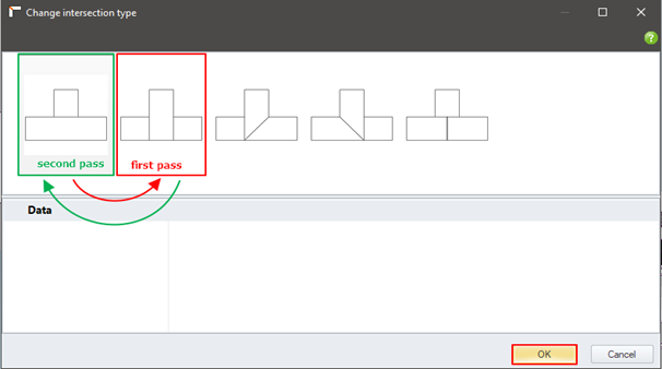• Choose some other type of the intersection and confirm. Click Change intersection type button again and choose the correct original intersection type: