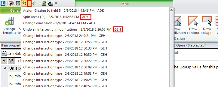 Click small arrow next to the Undo button. You can see changes log in following syntax: