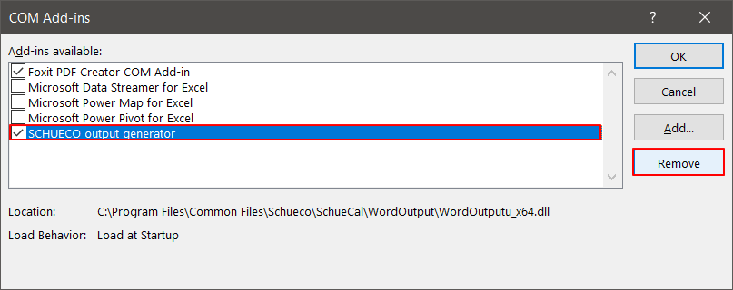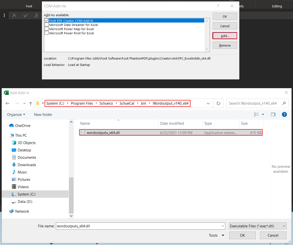 Click Add button and navigate to C:\Program Files\Schueco\SchueCal\bin\Wordoutput_v140_x64. (If you are working in 32 Bit Windows platform than choose Wordoutput_v140_x86 folder)