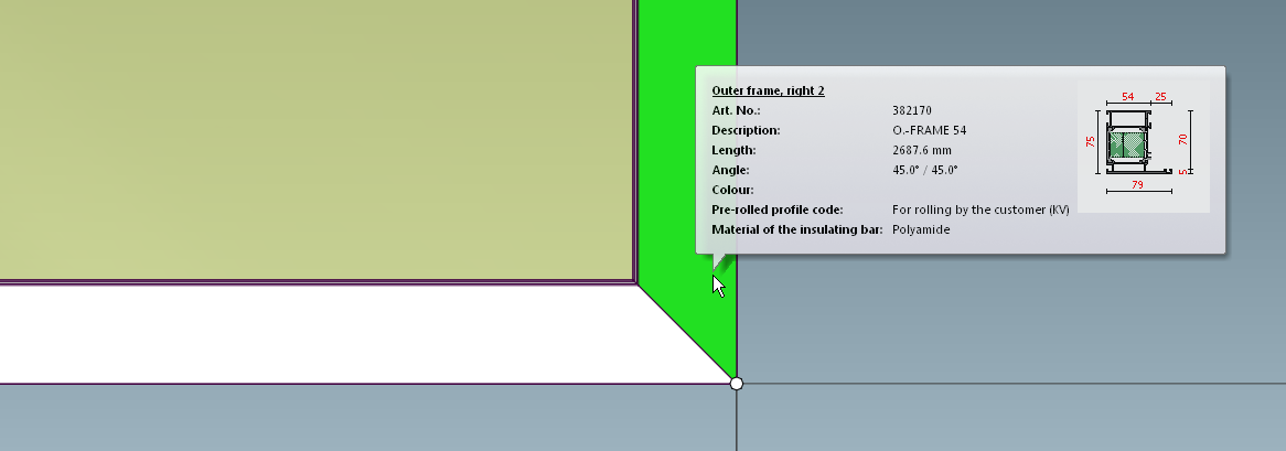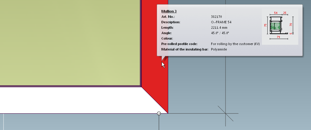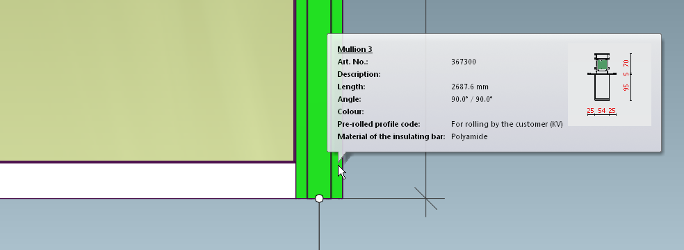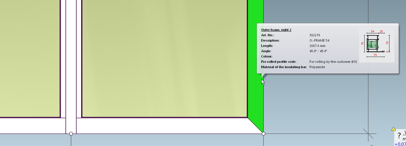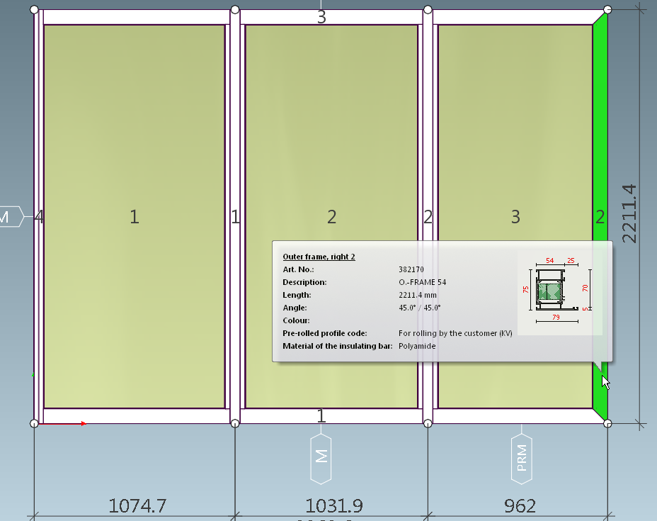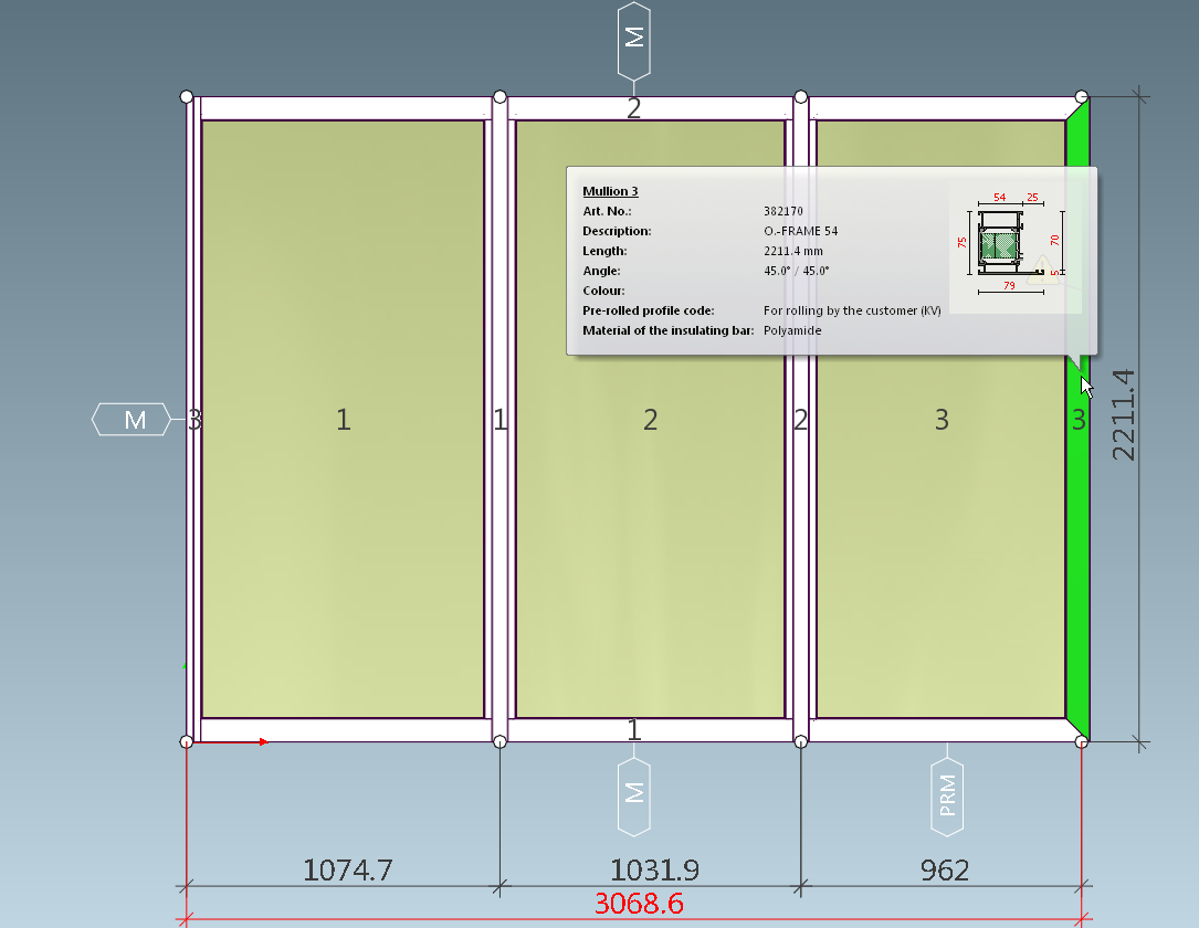 And mullion No 3 on the right frame side became the last profile closing the frame. Still Mullion though, not Outer Frame, and its axis is in the center: