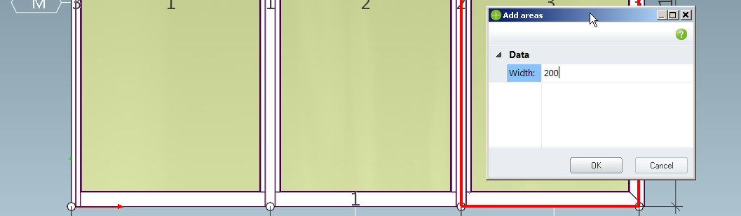 After merging we must modify newly created area No 3 width and subtract 200 mm from it.