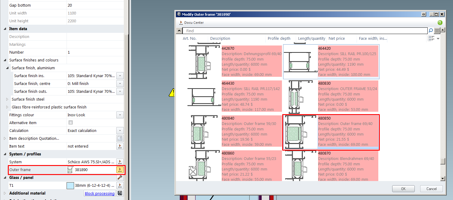 Click Outer Frame property field and pick profile no 480850 or similar. You can find it in subcategory Can also be used as…