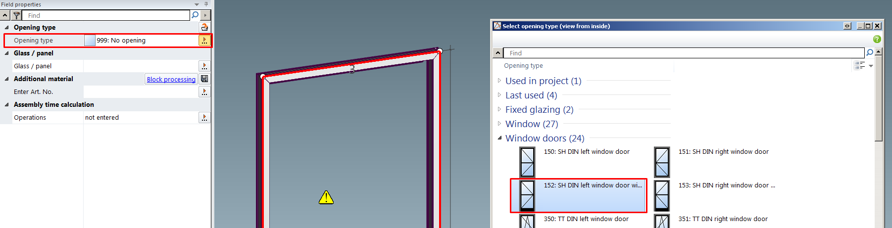 Click the vent to see red boundary marking and change Opening Type to type 152 or 153: “window door WITHOUT outer frame”: