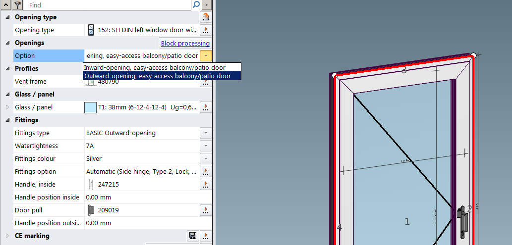 Click the vent again and choose desirable opening direction with easy-access threshold under Option propery field: