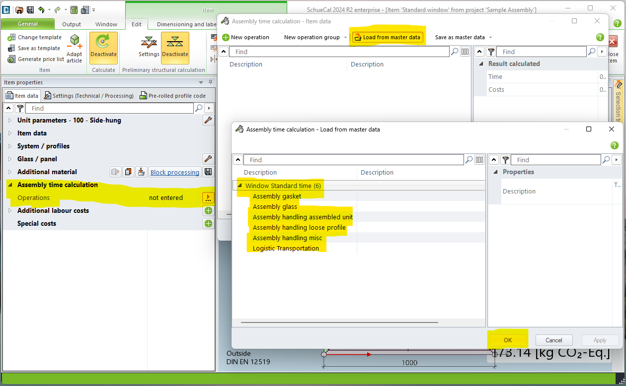 How to configure SchuCal Assembly time calculation and apply on model