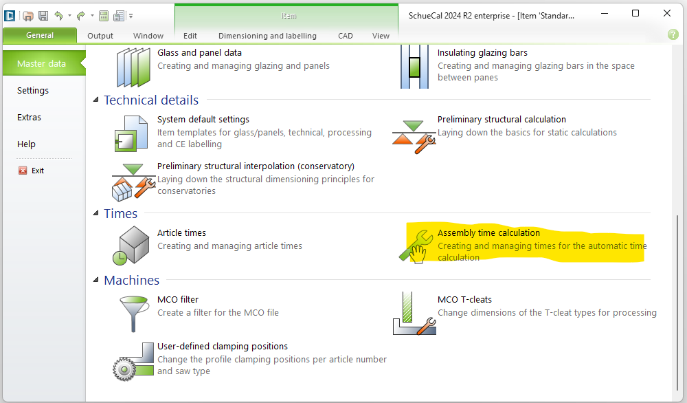 Now we can set up task timing rates. Go to General > Master Data > Assembly time calculation