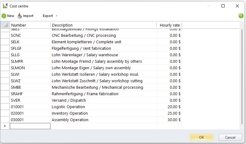 Click “Load from master data” to select the operations from the master data. Select the operations or the operation groups and click “OK”. Operation time and cost apply on the model.