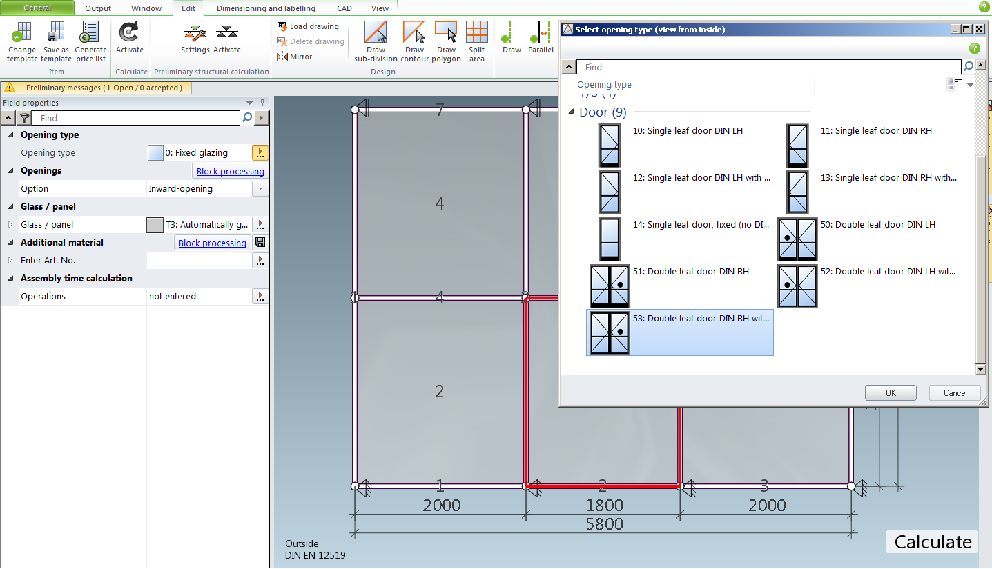 How to create asymmetrical door in SchuCal?