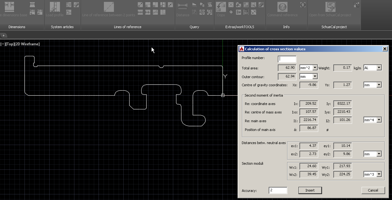 Hint: These physical parameters are valid only for 307660 profile. If you are trying to put custom profile instead, check those with Calculation of cross sections values that it part of SchuCad tools:
