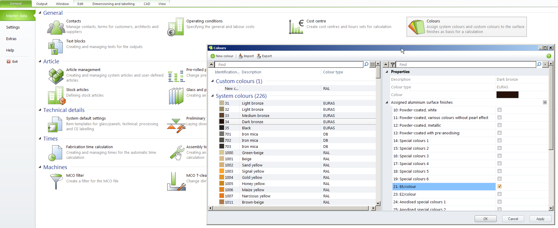 Select color 34 Dark bronze and on right pane under Assigned aluminum surface finishes check 21: E6/color on:
