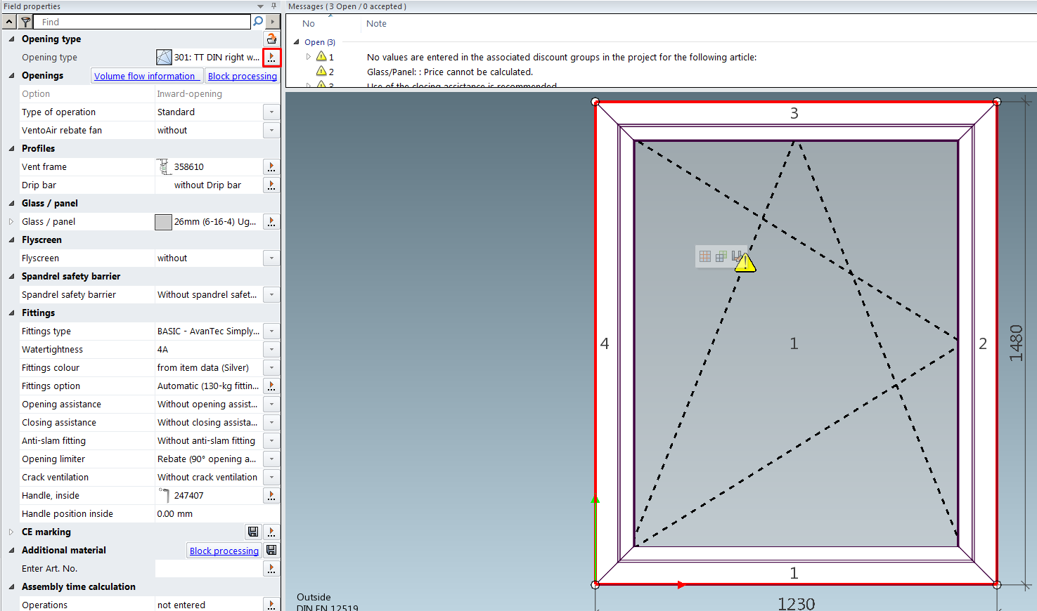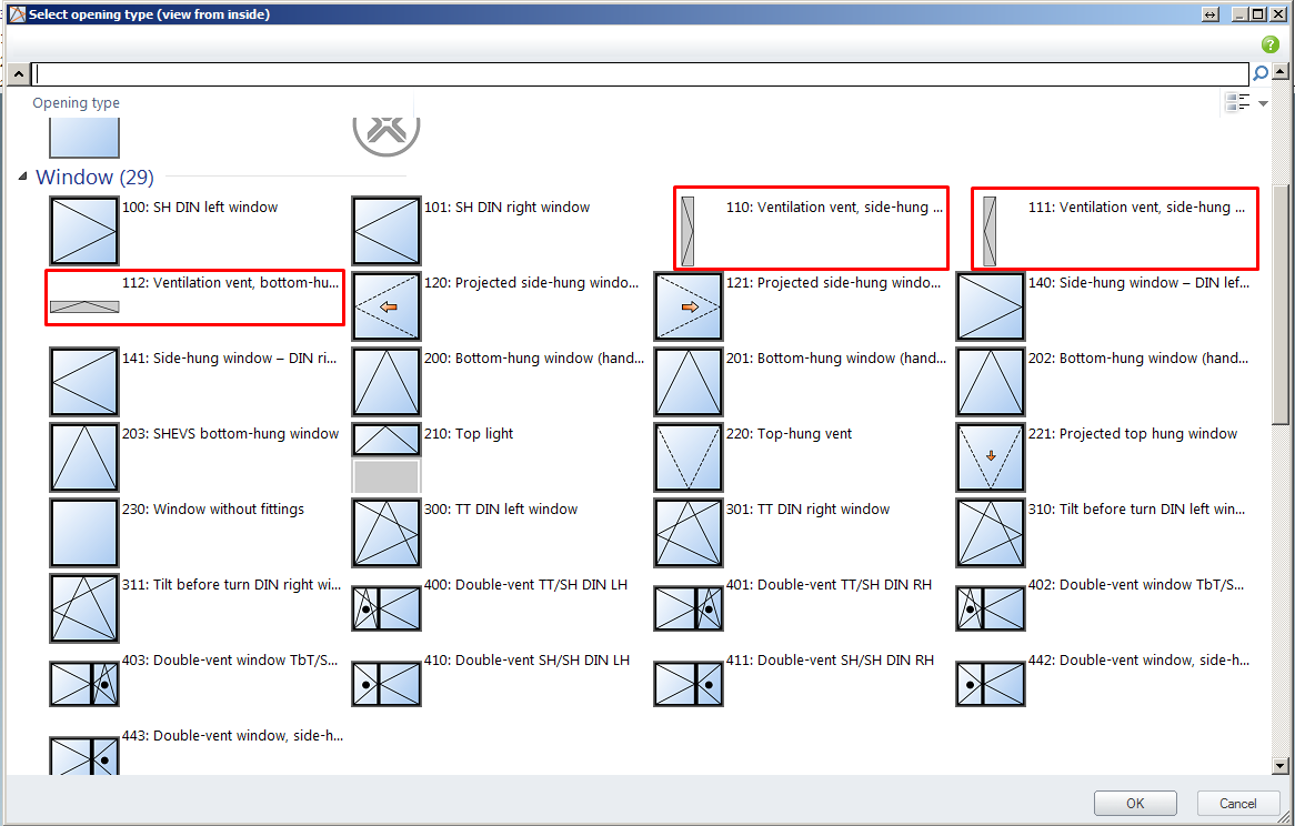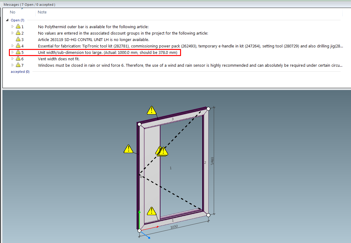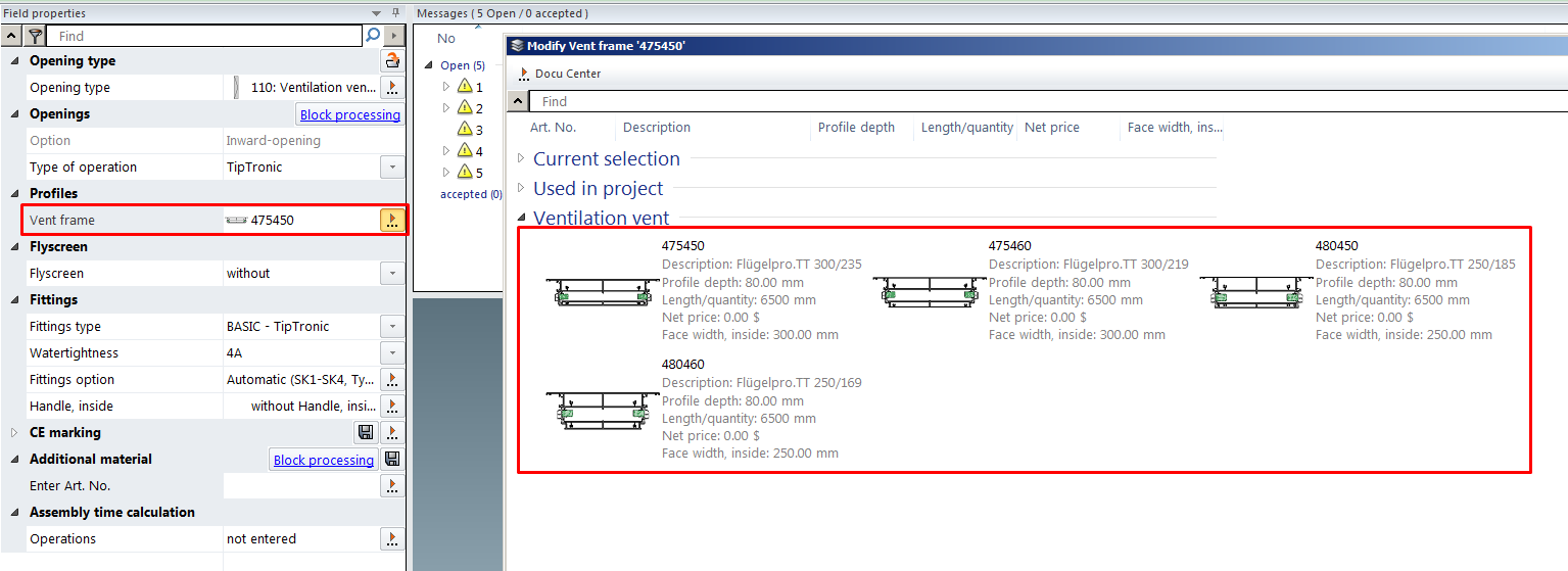 Ventilated Vents are fixed size profiles, so you need to adjust opening dimensions to match it. You can follow specification in Schuco DocuCenter documentation or check Schucal Messages window to find unit size limitations: