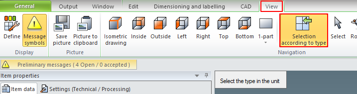 After activating the tool select the object type in the unit, in our example one of the glass panels.