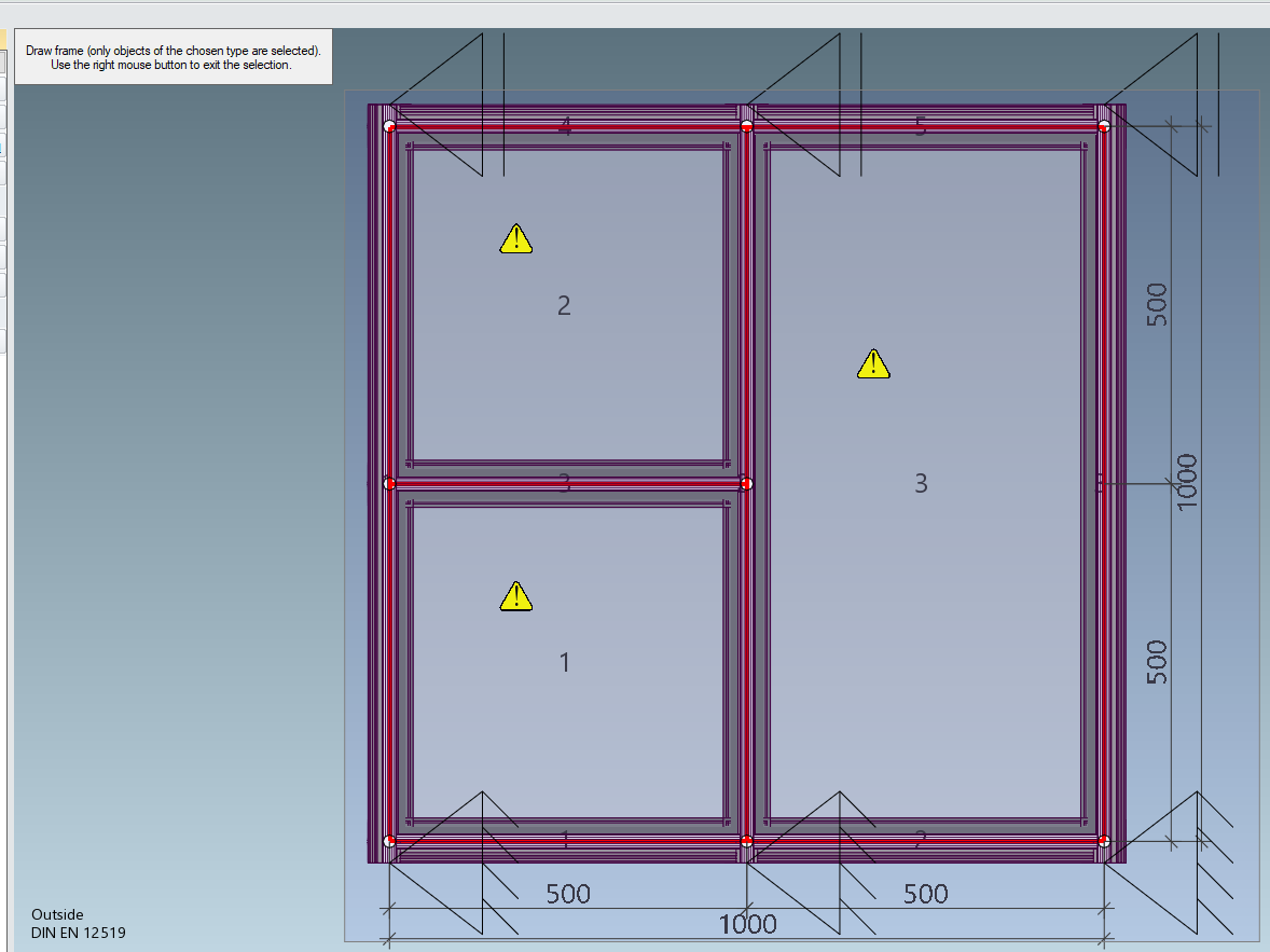 In the next phase drag the area over the all unit. Only glass panels that are included in the selection area will be selected:
