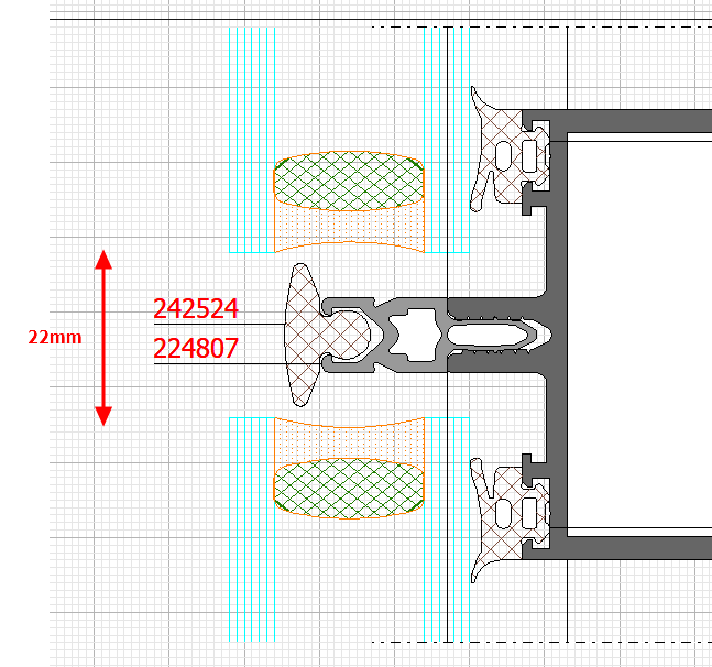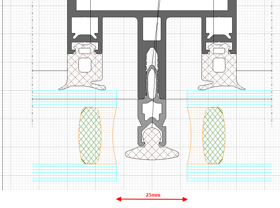 In the example below we will make custom gap size between glass panels as 7/8″ (22mm) for horizontal and 1″ (25mm) for vertical divisions, what is defined by Test Report for FWS 60 SG in seismic zone areas. Please note that standard gap for both of them is 20mm.