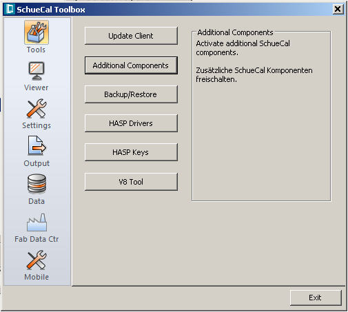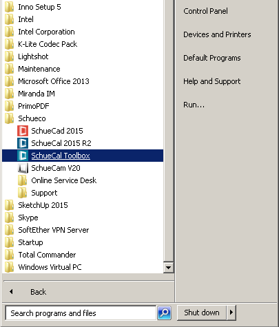 MCO functionality is enabled on client’s request. After email request you will receive numeric code that has to be entered in Schucal configuration. SchuCal Toolbox, small maintenance application installed together with SchuCal is right tool for that. You can find it under menu Start: