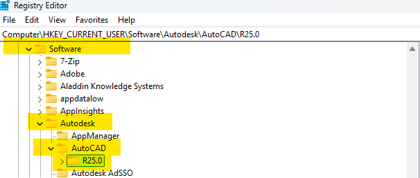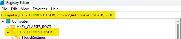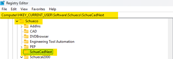 3. Edit under “CURRENT_USER”. Delete all “R##.#” folders under AutoCAD. Delete “SchueCADNext” folder under Schueco.