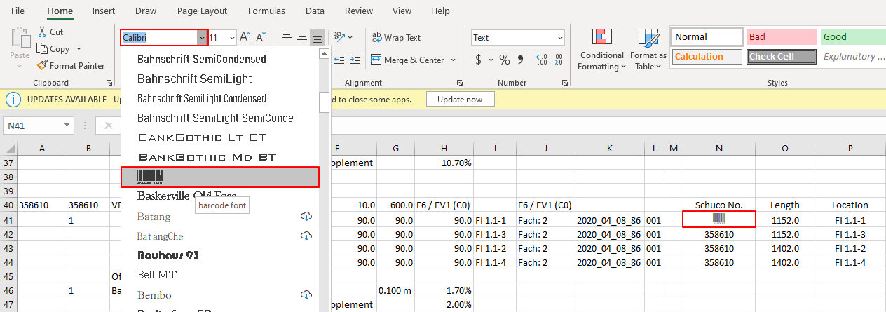 For this we will use Schucal reports generated to Excel and use custom bar code font installed in your operating system.