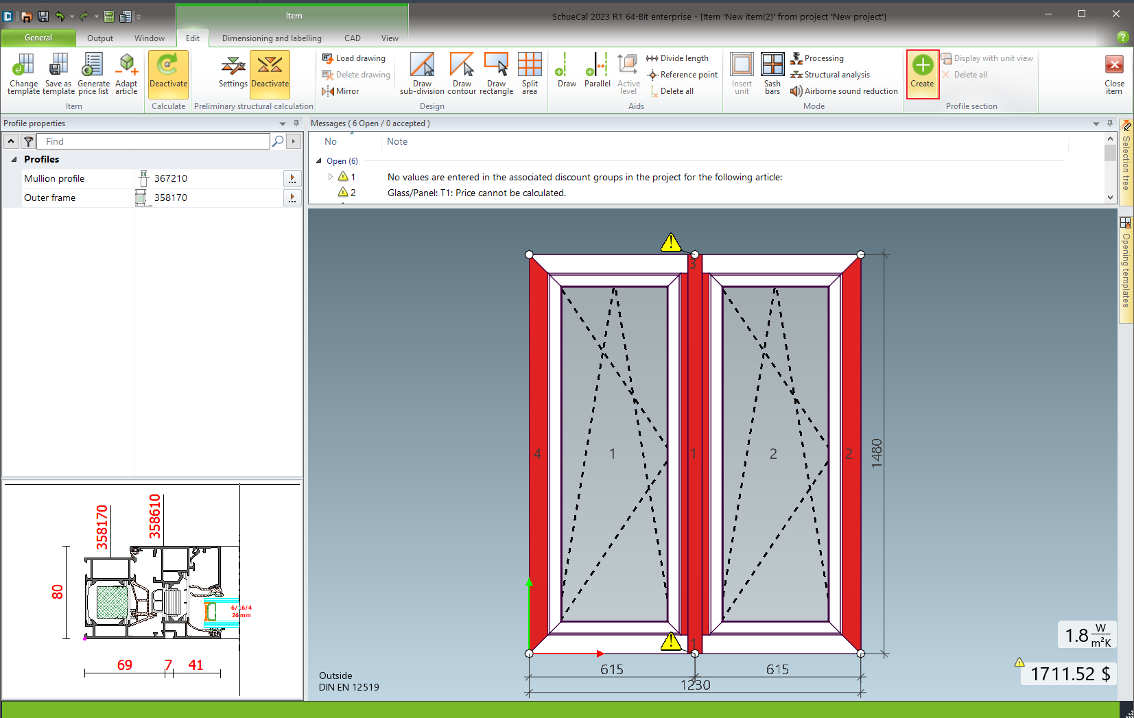 On the Edit tool bar ribbon click Create button on Profile section area. This will generate section line as on the screenshot below: