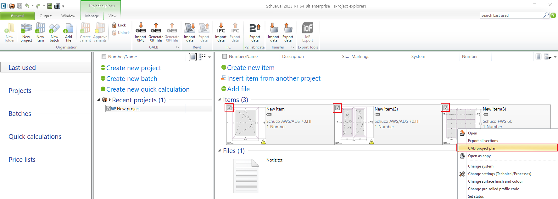 Select all units in the project by CTRL-A method or CTRL > Select The Units and click right mouse button. From contextual menu choose CAD project plan: