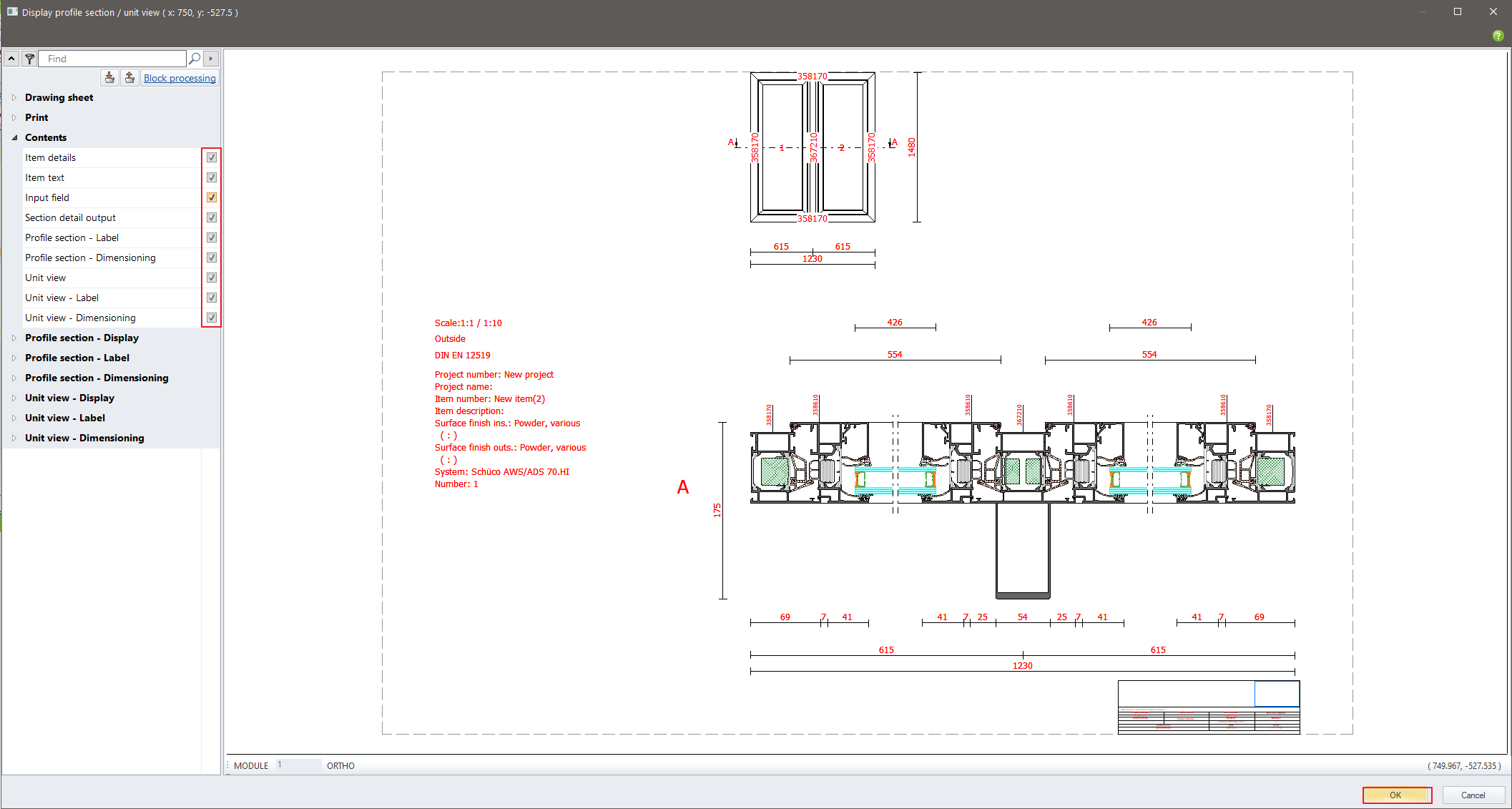 On preview window choose which detail components you want to include in the drawing. Click OK: