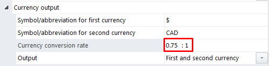 and define Currency conversion rate as a factor of USD/Second-Currency (USD/CAD in example