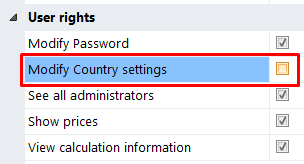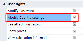 Administrator set Modify Country Settings in User rights to Unchecked: