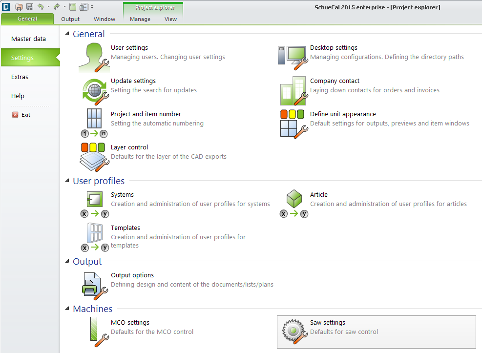 For the Cutting optimization list and Print label list, specify in the respective Output options the saws for which an output is to be carried out.