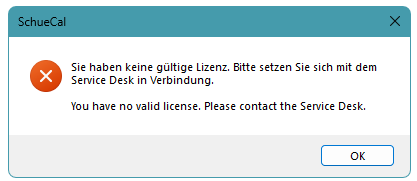 If the HASPID (Example: HASPID=”1234567890″) is fully occupied, you will see below message when starting SchuCal. System will not assign next available HASPID automatically, after HASPID is defined (Example: HASPID=”1234567890″).