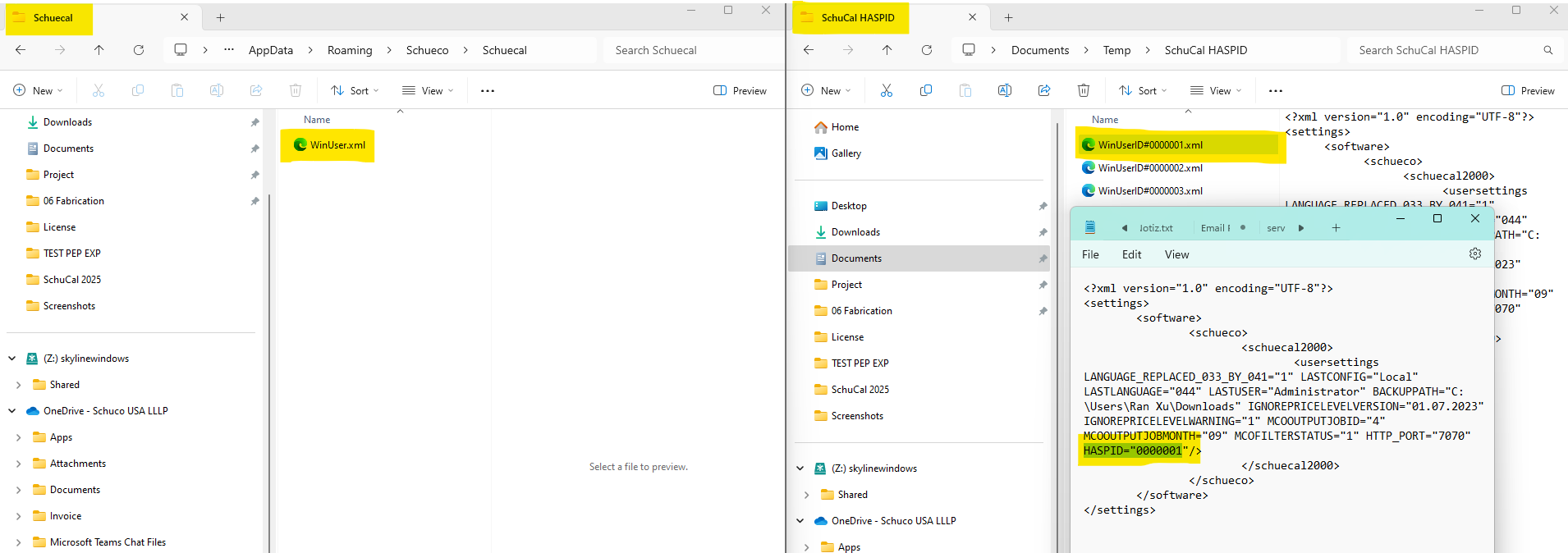 - If want to use ID#0000001, replace the “WinUser.xml” by “WinUser#0000001.xml” at C:\Users\%Username%\AppData\Roaming\Schueco\Schuecal. And then rename the “WinUser#0000001” to “WinUser.xml”