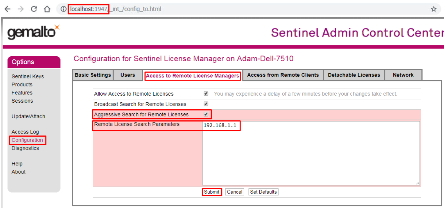 Go to Configuration > Access to Remote License Managers and: