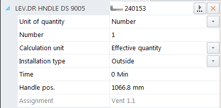 Remember to go into each material and set up additional properties, e.x Handle position, Side of installation, vent assignment: