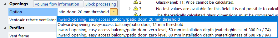 - Window doors: Can only be selected for zero level threshold options.