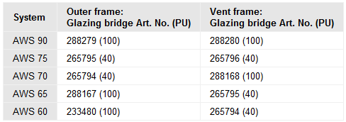 Change to axis dimensions when using Art. 502670, 502680, 502690 and 502700 as mullion/transom