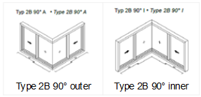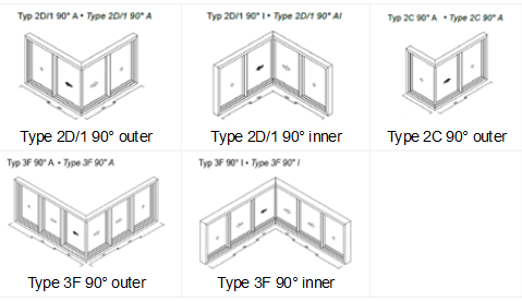Double-track 90° corners can be created so that they correspond to the following types in the order manual: