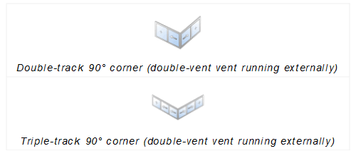 Double and triple-track 90° corners can be created so that they correspond to the following types in the order manual: