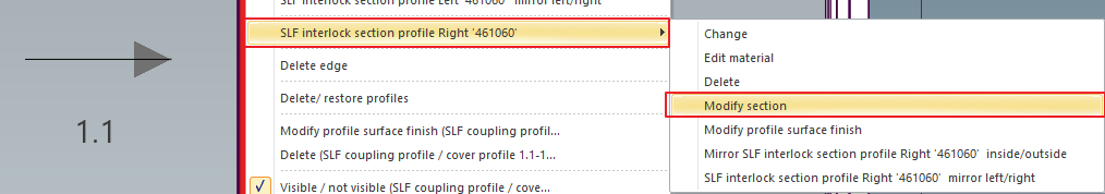 Previously, the reinforcing option for the interlock section profile could be selected by the Modify section function.