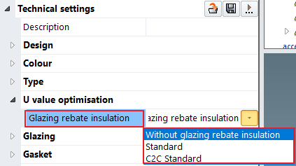 - The checkbox has been replaced with drop-down list. You can now use this to select the required option for the glazing rebate insulation.