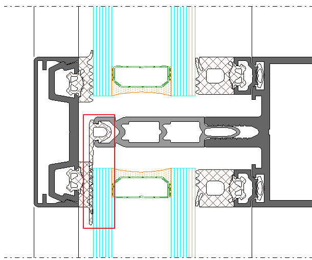 When DesignLine is selected, the narrow interlock section profile is calculated (Schüco ASE 60: Art. No. 494450; Schüco ASE 80.HI: Art. No. 494410).