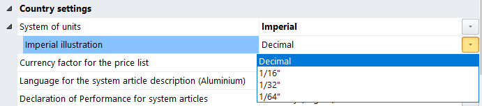For this, there is a new selection list called Imperial display in the User settings dialog box under Country settings > System of units. You have the choice between decimal notation (0.000″) or as a fraction (1/64″, 1/32″, 1/16″).