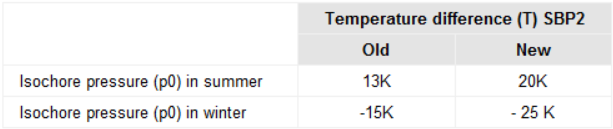 The standard default values for the temperature difference in space between panes 2 for the Isochore pressure (p0) in summer and the Isochore pressure (p0) in winter have been changed.
