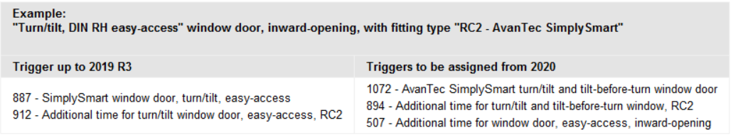 This change affects the time calculation for existing items. If you have assigned these triggers in your production lines, they will no longer be available from the 2020 version. Please assign your actions for easy-access units to available triggers.
