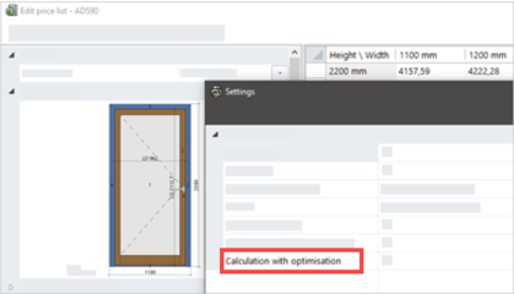When creating price lists, the prices in the previous versions were always calculated taking into account the optimisation settings. As of this version, you can decide if the prices are to be calculated with or without optimisation. (Edit price list dialog box > Settings button > Calculation with optimisation check box).
