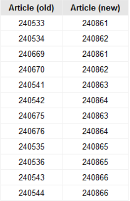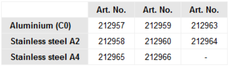 Due to this change to the logic, the calculation of the cavity-fitted gearbox and the handles will change for certain existing items from the previous versions. In this regard, note the rows marked with asterisks in the following tables.