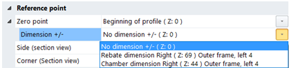 As of this version, the insert points for processes can be positioned by defining the zero point in combination with a variable dimension +/-. For example, the insert point can always be moved from the “beginning of the profile” zero point of the outer frame at the bottom by the “chamber size” dimension +/- of the adjoining outer frame on the left. In this way, reference points for processes, processing groups and serial processes can be kept the same, even if the adjoining outer frame on the left has been changed to another outer frame with different chamber size.