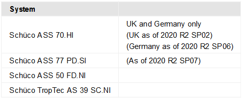 As of version 2020 R2 SP06, Schüco AB ZDS sun shading can be entered as a surface-mounted solution in the following window systems: