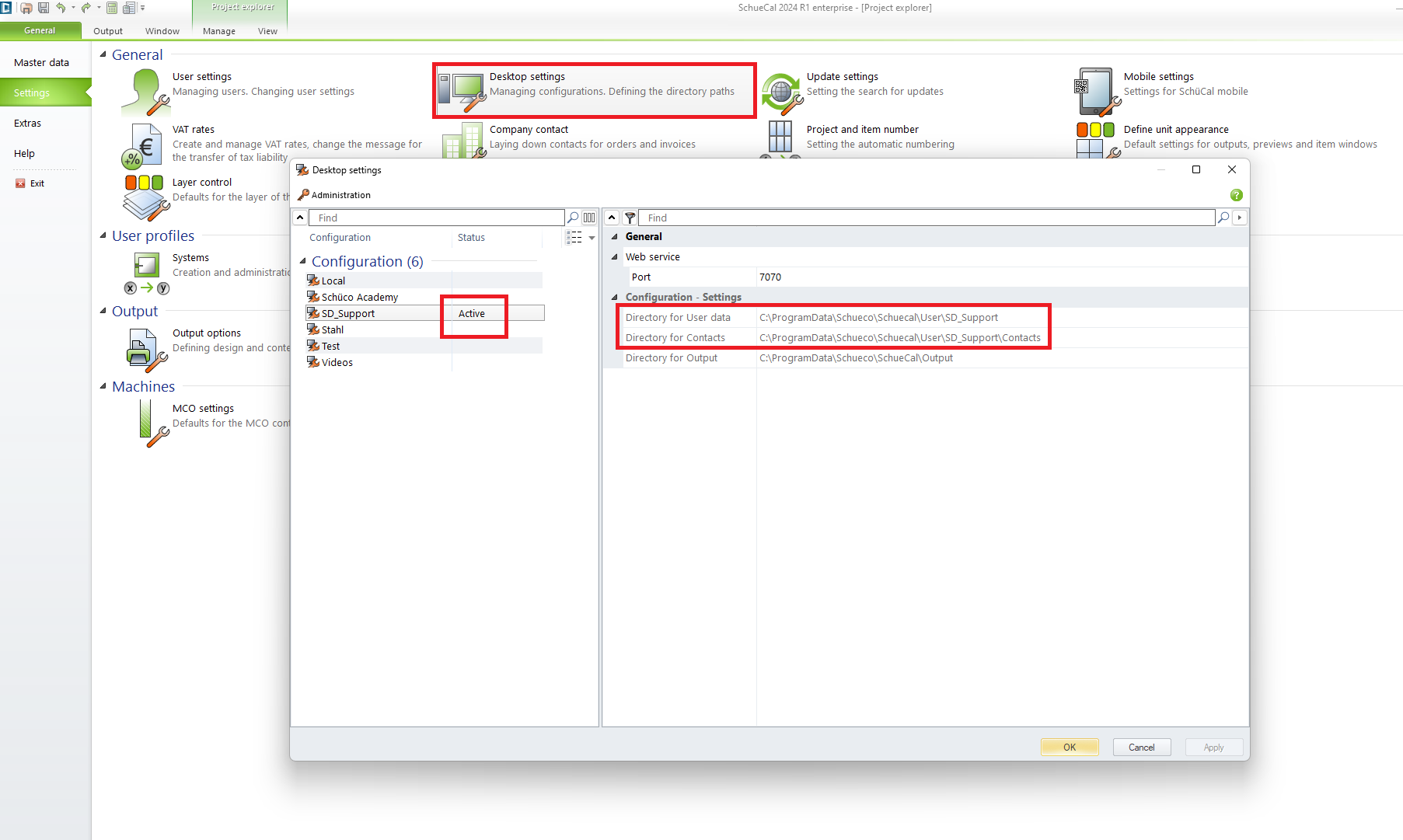 - Open SchuCal on the old computer. Goto: General/ Settings/ Desktop settings.