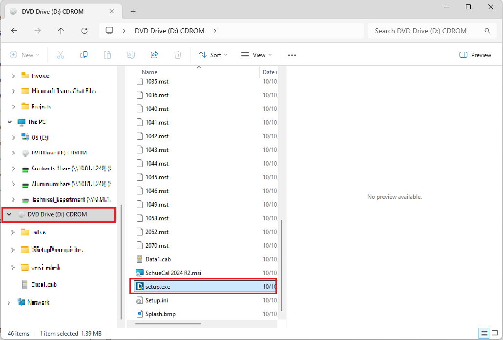 Double click this file to open its content. Navigate down to find Setup.exe file: