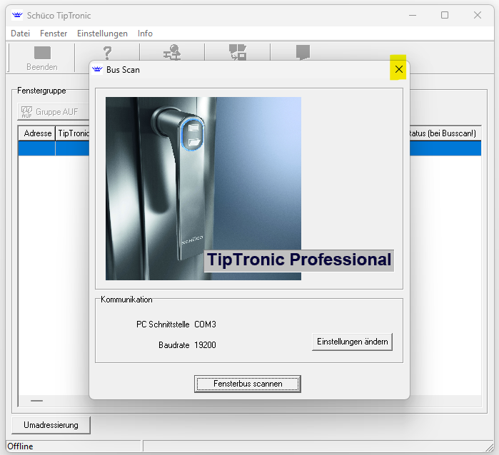 Open “TipTronic Professional V8.1 (Standard-Version)” folder, find “TipTronic_Prof_V81.exe” file. Double clicks to open it. System default language setting is Germany. Please Close (X) the bus scan window.