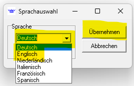 In the “Sprachauswahl” window, Select the language from the drop-down list. And click “Ubernehmen” (Accept).